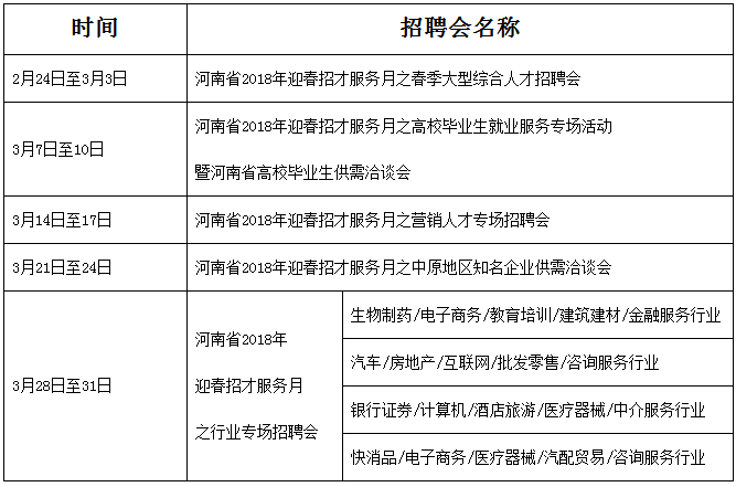 昨日,河南省人才市场召开新闻通气会宣布,将于2月24日至3月31日举办“河南省2018年迎春招才服务月”活动,36天24场不同主题的招聘活动,共3700家单位招才、提供18万岗位。