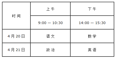 河南省“运动训练专业单独招生”文化课考试考点设在黄河科技学院南校区。考生可于4月19日15:00至18:00自行前往考点熟悉考场。考试时间如下:
