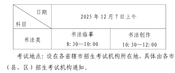 考试时间:从2025年12月下旬开始分批进行,考生应于 2025 年11月22日8:00至11月24日18:00登录河南省教育考 试院网站(https://www.haeea.cn),通过“河南省普通高校招 生艺术类、体育类专业省级统考网上预约入口”预约具体考试时 间。约考时间一经确认,不能修改。